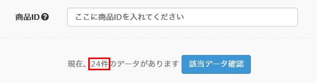 商品IDの欄に商品IDを入力し、該当データ確認をクリックします。